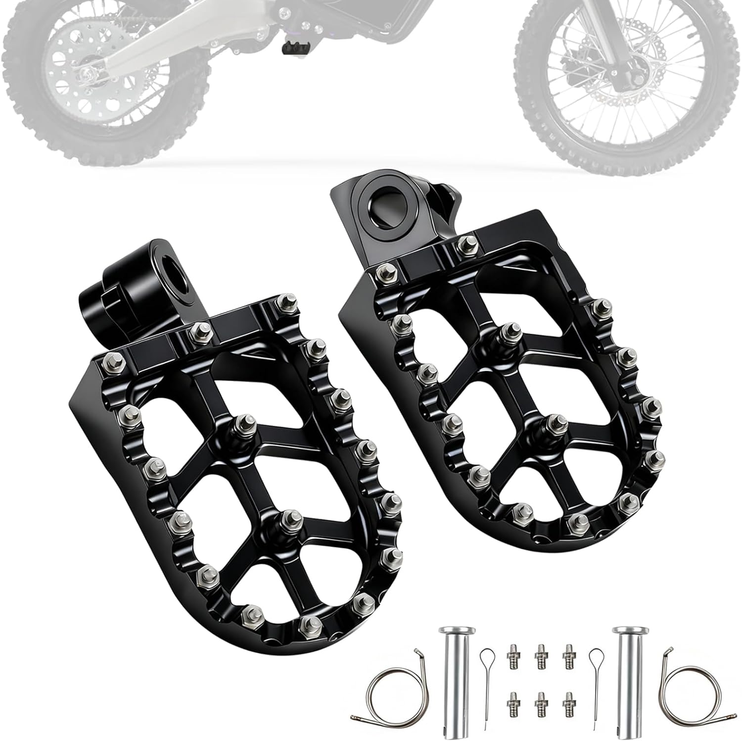- WIDER PLATFORM & BETTER GRIP - The larger surface area and anti-skid spikes on these dirt bike foot pegs provide a firmer footing, giving you more stability and confidence on any terrain.